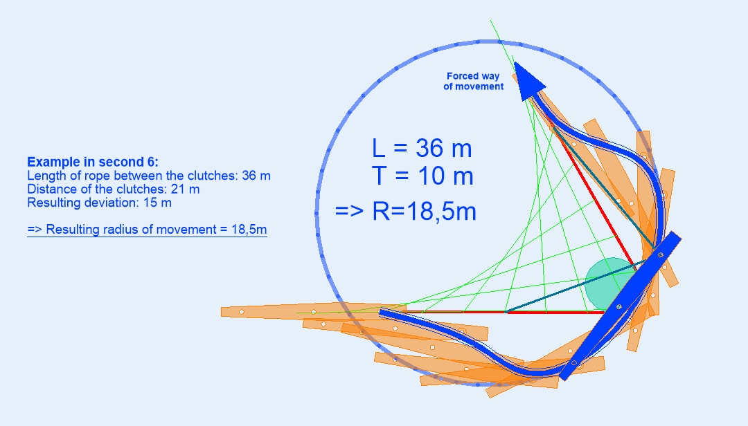 The frontrope moves the boat forward, it’s a bit longer than the distance between boat and rod and allows the boats free up- and down-movement. When the resistance of the boat exceeds a certain limit, the rope will be rolled out to bigger length in order to a respond collision.