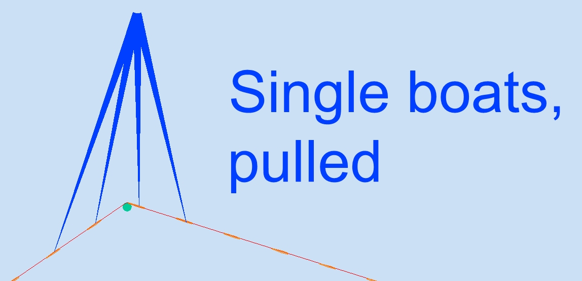 is possible by ropes and / or rods, in the picture nearby there are like a triangel hinged rods (green), which force the boat by shortening one of the trianglesides onto a bigger radius of movement.